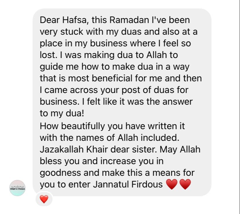 Salam, I'm Hafsa - your life & Business coach - who lives her life by dua.